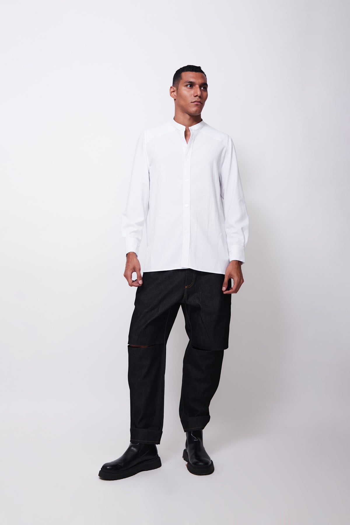 Camisa Cuadrada Cuello Mao