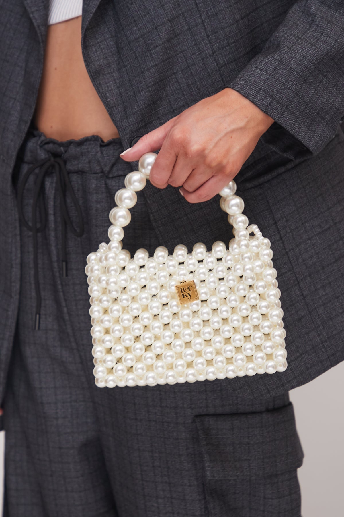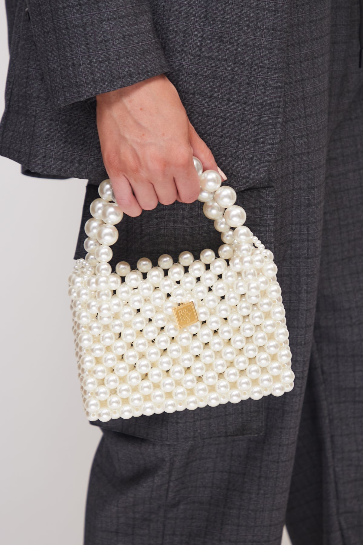 Bolsa de perlas con doble asa perlas grandes y strap largo.
